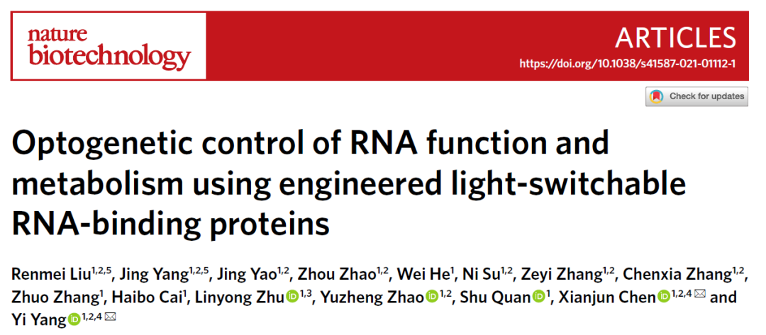 Nat Biotechnol | 杨弋团队报道RNA光遗传学工具,可时空精确操纵活细胞RNA代谢与功能