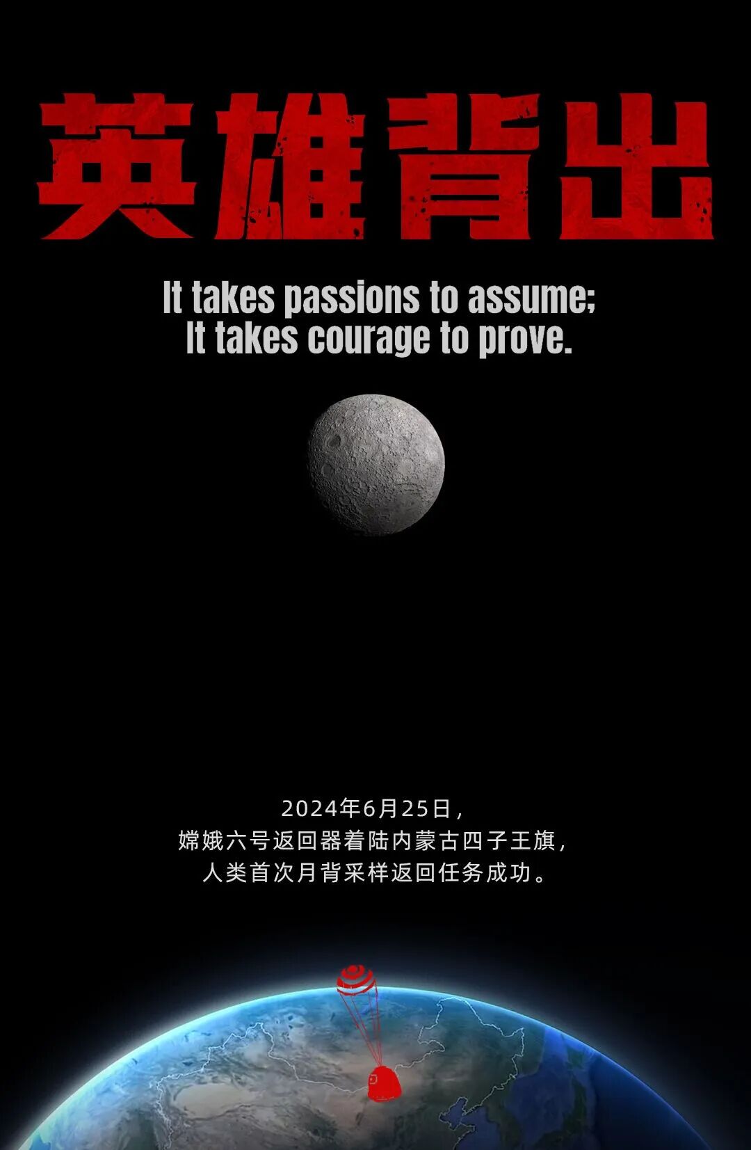 2024年6月25日14时7分,嫦娥六号返回器携带来自月背的月球样品安全着陆在内蒙古四子王旗预定区域。