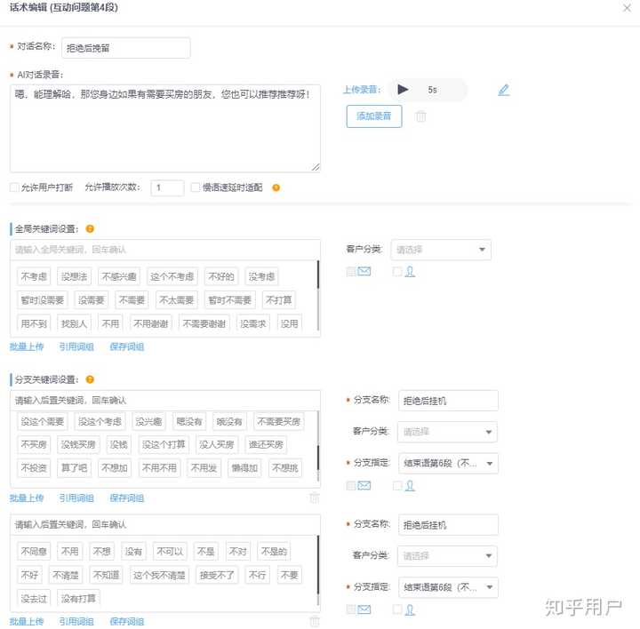5. 自主挂机设置:当用户明确表示不需要时,系统不会强制介绍产品直至用户挂机,其会先行挂机,避免过多打扰。