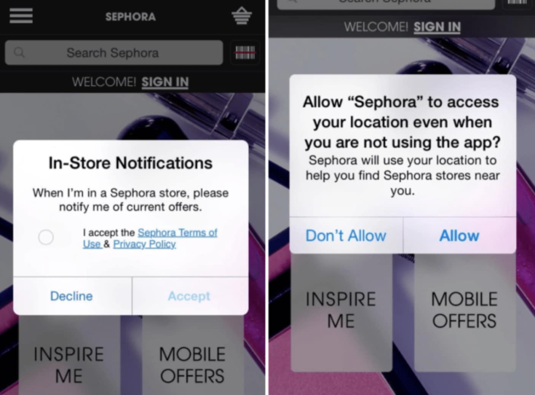 丝芙兰向搜索特定商品的个别客户发送通知。例如可能会在新产品上架时通知客户,在他们的生日当天提供礼物并宣布即将发生的事件。