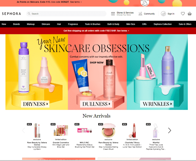 有时,简单的方法是最有效的。当我们有大量的产品要选择时,简约的网页设计是一种不错的选择。丝芙兰的电子商务网站就是如此 。