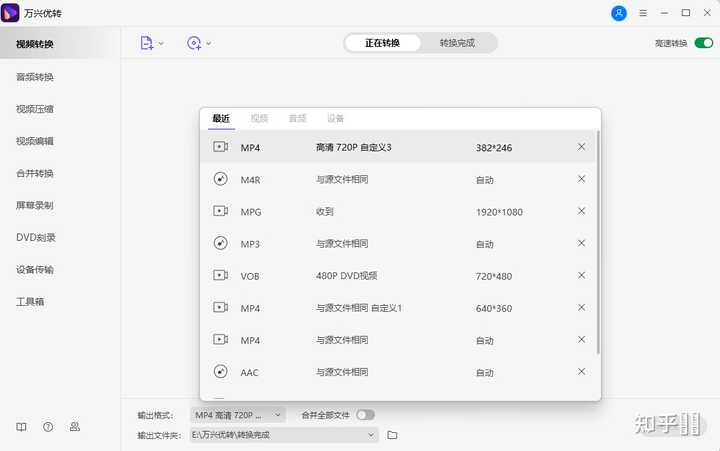 万兴优转支持超过1千种音视频格式的转换,还支持视频压缩,录屏剪辑,DVD刻录,一站式视频等功能。
