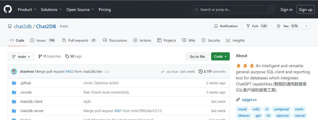 这个项目的名字叫做Chat2DB,在github上alibaba这个组织下,搜索一下就可以用起来了。
