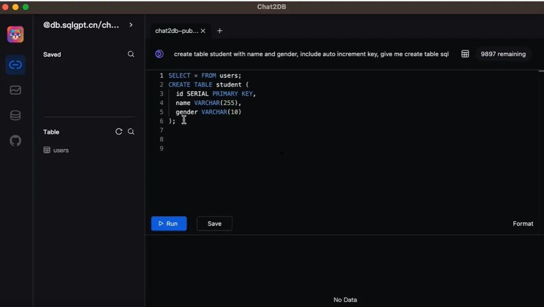 Chat2DB整体的设计简单易用,没有任何花里胡哨的东西,符合技术人喜欢简洁的特点。