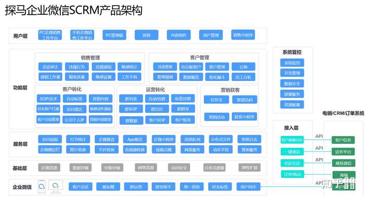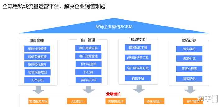 探马SCRM是企业微信的官方第三方服务合作商,提供了企业微信客户管理运营的相关服务。主要功能是围绕着销售管理、客户管理、客户转化和营销获客这四个方面。ta