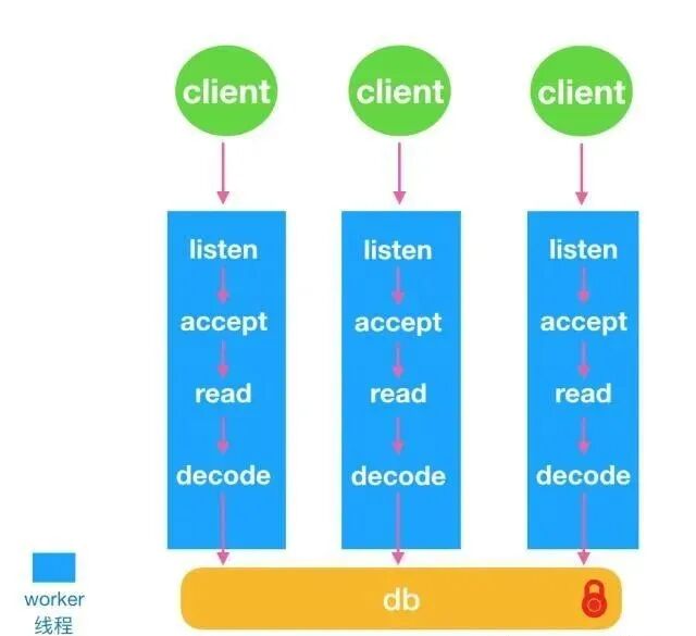 解析协议之后每个线程都会去操作内存中的数据,由一把全局锁来控制多线程访问内存数据。