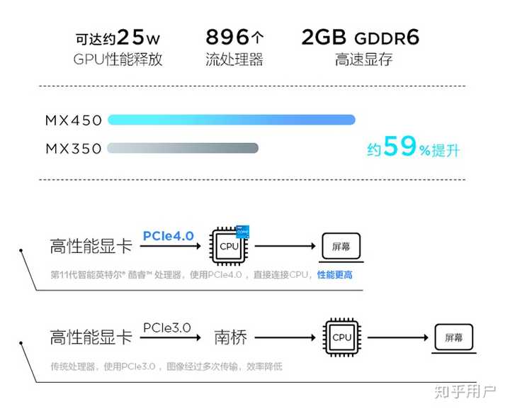 2、显卡:轻度使用选择独显MX450就可以了,对比上代MX350,图像处理性能提升60%。重度使用,后期视频剪辑等,选择GTX1650 4G显存的显卡起步,这样的显卡多半搭载在游戏本上,独显可以在视频剪辑预览的时候,起到硬件加速的作用。