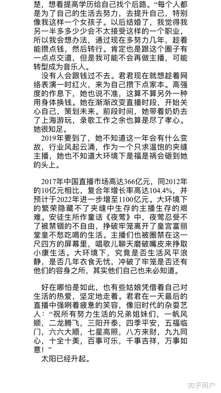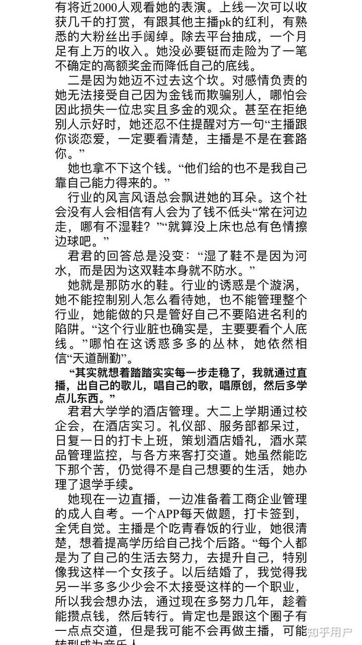 https://www.zhihu.com/video/1060882776554901504当然实习期结束,我就…休学了。考虑得很清楚休学一年,专门做直播,因为对于我来说,这条路适合我。我小时候学了10年芭蕾…后来荒废掉了,基本功全拉了,也怪我懒。家里条件不允许,没走艺体,大学就硬考,发挥失常,进了成职(学校挺好的,虽然是专科院校,但校风真的很好,管的很严,每晚查寝,进出校门必须刷卡)不过在学校里还是能干自己想做的事,跳舞唱歌,我都参加。因为不是专业的,所以麻烦大家轻点喷,放视频也是想展示自己,哈哈哈哈哈哈