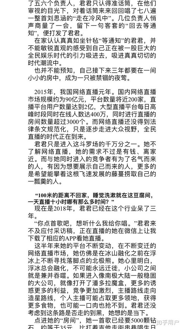 因为我有提前约,他们帮我在直播间(就是只有5个左右平方的小房间)调好设备,教我怎么录视频,于是我唱了一首《走在冷风中》。他们当场来来回回听了很多次,就说应该通过审核没有问题,让我回家等通知… 于是… 我在家整整等了七天,实在忍不住了,就发消息一问,他们说是忘记给我开号了… 后来就上岗,当时是2015年的暑假,因为我很喜欢唱歌,所以也就是主打唱歌风格的直播。第一个月傻傻的,进人也不知道欢迎… 木讷的很,每天我早上七点起床,从八点直播到下午五六点,(吃饭都会在直播间吃)因为有前辈要用房间,晚上播不了。(公司硬规定是每天直播4—6个小时,但我知道努力才有收获,基本上直播时间保持在6个小时以上)还好,对于当时的我,第一个月拿了3000块,哈哈哈哈哈刚出社会嘛,高兴的飞起来。