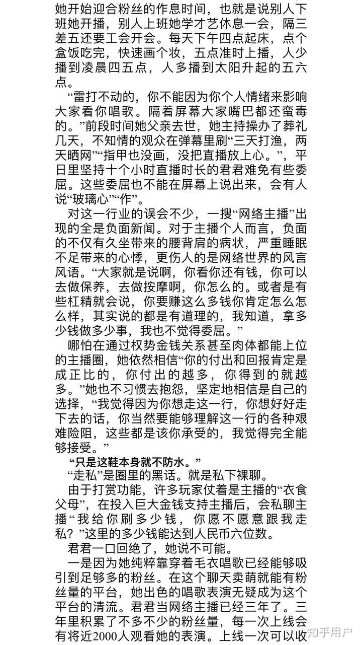 首先我要承认,赚钱肯定啊,必须赚啊,谁不想多赚钱,放着这么好的机会我不去做,我傻啊。又能做自己喜欢的事,又可以养活一家人,我觉得我很幸福。其次,拼命的话,当然是相对于我们这个行业的拼命,没颜值拼才艺,没才艺,拼聊天,不会聊天,熬时长。我的颜值我是没办法了,拉了个双眼皮,我也知足了…才艺我去学,聊天不会,我多看点段子,熬时间就不用说了吧,我时间一直都蛮长。最后,关于签经纪公司,哎,签了,那就是卖身了!!! 我有个远方亲戚是做经纪公司的,他跟我说了一句话,现在出歌拍电影什么的,艺人无非就是陪吃陪喝陪玩,我心里也清楚他还有一陪没说。他那会就想签,但我严词拒绝了,就算是亲戚,我也不签。所以我现在在做的就是积累粉丝,粉丝量大了,我再自己做团队,谁也坑不到我。一般我自己没有把握能控制的事,都不会去做,变数太大了,当然也是吃了亏才懂的。
