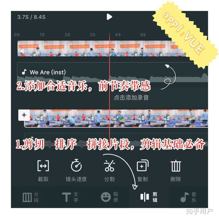剪辑视频原始素材,拆分多个镜头,再从中抽取精华镜头,方便实现排序,剪切,拼接片段等操作。