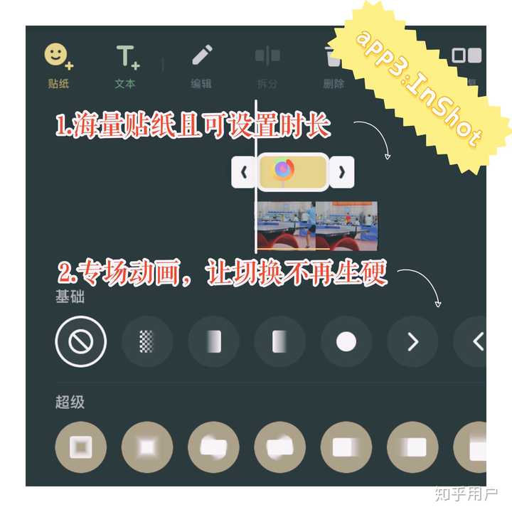 添加转场动画方便,对视频进行分割处理后,割裂处出现➕标志,可以直接添加转场动画效果,特效类型丰富,多种免费效果,还有丰富付费效果。