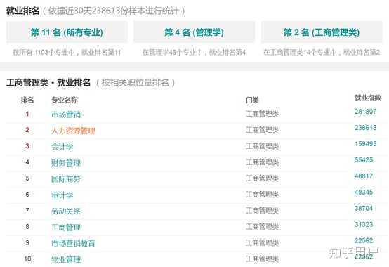以下为引自职友集23万调查报告样本的数据分析,可以看到人力资源专业在1103个专业排名中,就业前景排名第11,是除金融、计算机等强劲专业外的热门专业。