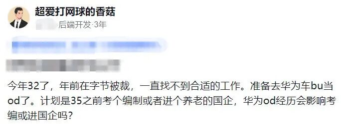字节员工:32岁字节被裁,一直没找到合适工作,准备去华为od了